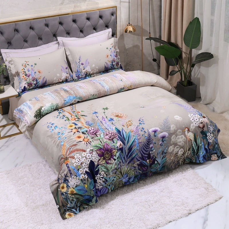 Egyptian Cotton Flower Dovet Bed Sheet Set